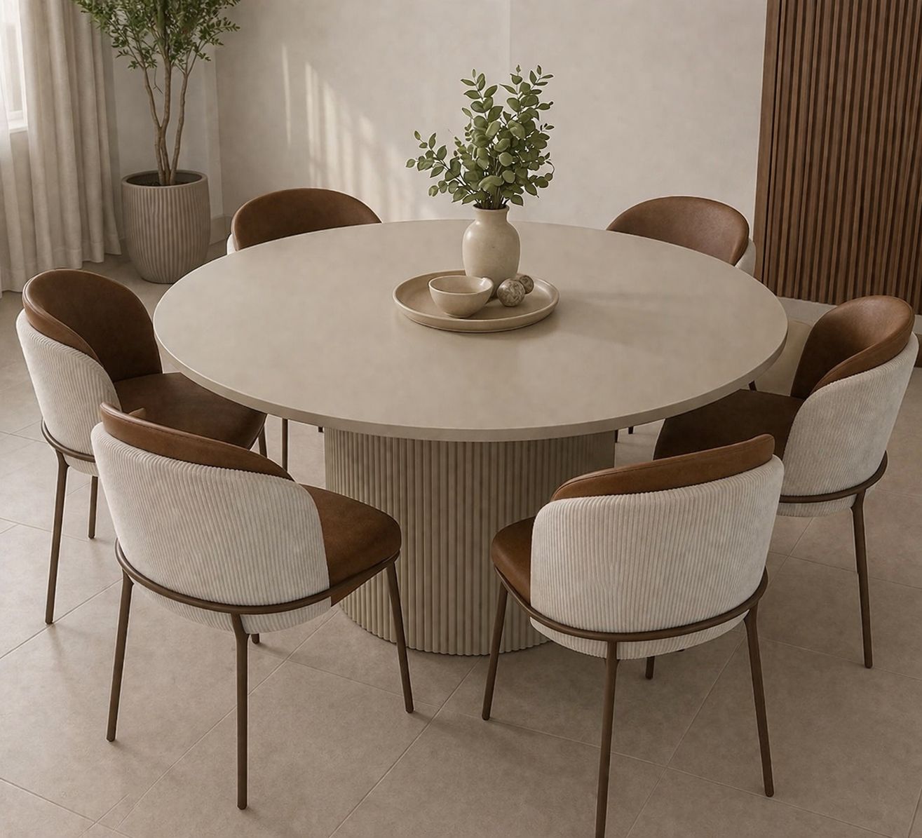 פינת האוכל של דגם פסים משלבת יופי טבעי עם פרקטיות